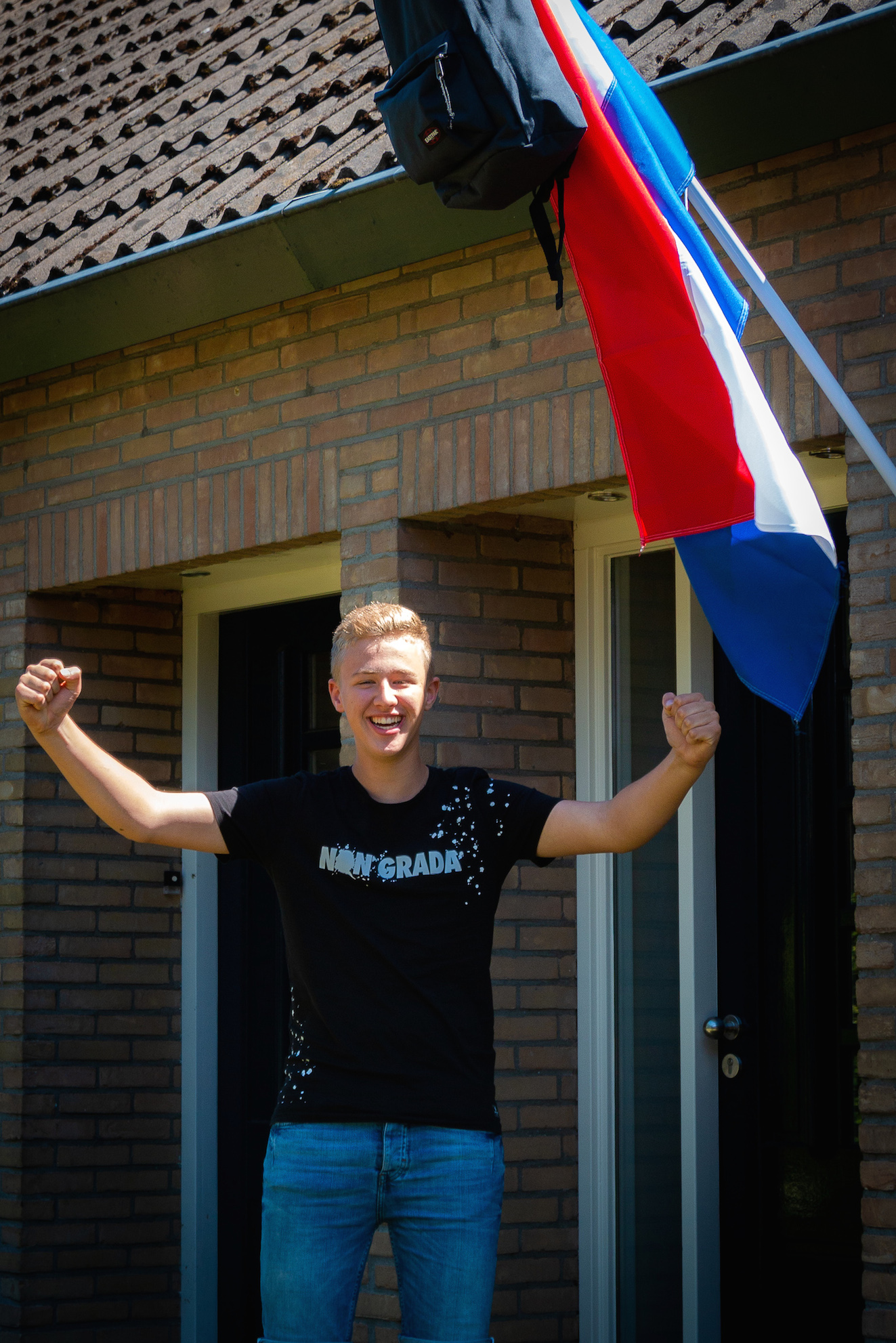 Ook voor Daan kon de vlag nog niet meteen uit. Hij deed VMBO TL examen aan het Hondsrug College en bleek 0.07 pt te kort te hebben op zijn gemiddelde score. Dus deed hij herexamen voor het vak Nederlands, waarvoor hij een 5,2 moest halen. Het werd een 6.9, dus ruimschoots voldoende en zeker een felicitatie waard!