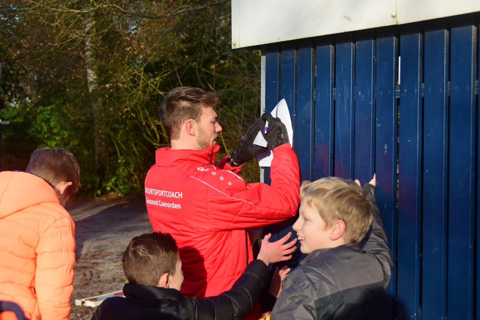 Klokslag 13.00 uur ging het sportevenement van start. Zo'n 25 kinderen waren erop afgekomen. De groepen werden verdeeld in jongens en meisjes.