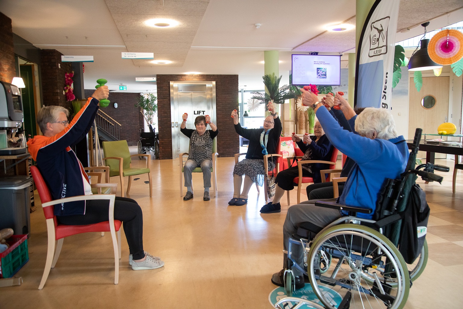 Tijdens de Nationale Sportweek, die duurt van 16 tot en met 25 september, lieten bewoners van woonzorgcentrum De Schoel in Sleen zich van hun sportiefste kant zien tijdens een daartoe georganiseerde beweegmarkt op dinsdag 20 september.