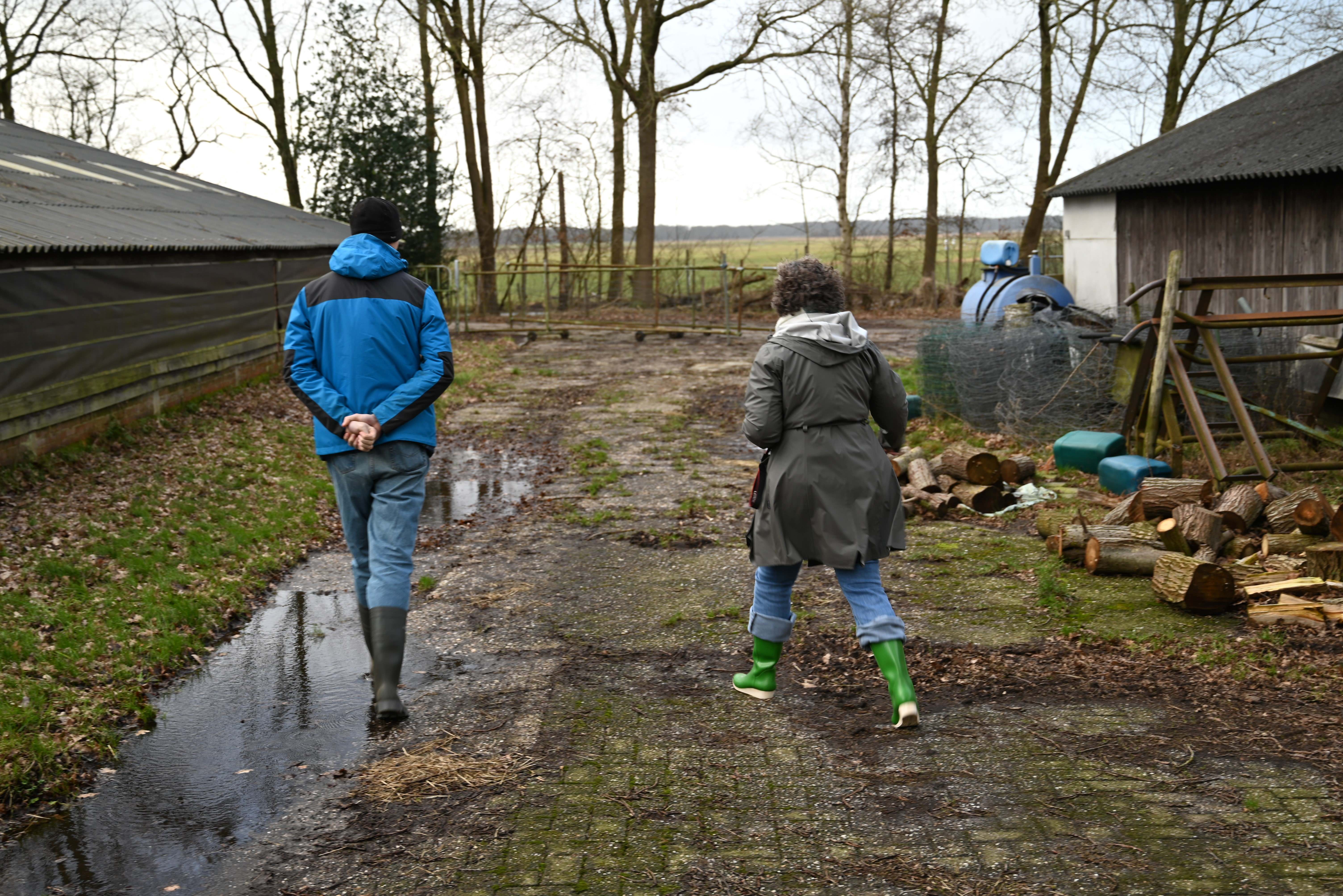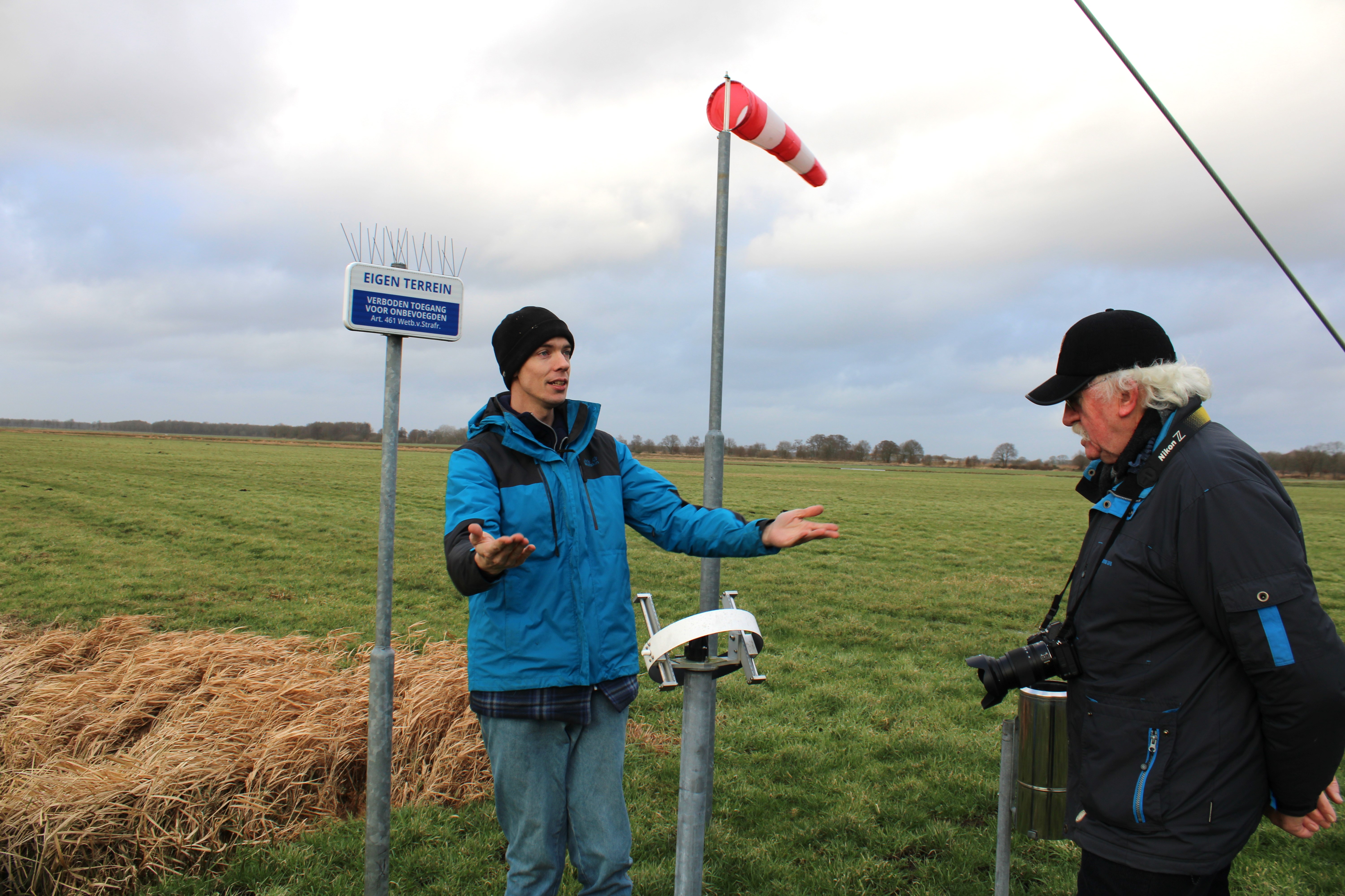 Het weerstation van Hans staat een paar honderd meter van het huis in het, nu nog zompige, veld. We krijgen allebei een paar laarzen en dan gaan we samen naar het weerstation. Het is inderdaad nogal nat en modderig, maar gelukkig weet Hans precies hoe we het beste kunnen lopen zonder diep weg te zakken in de modder.