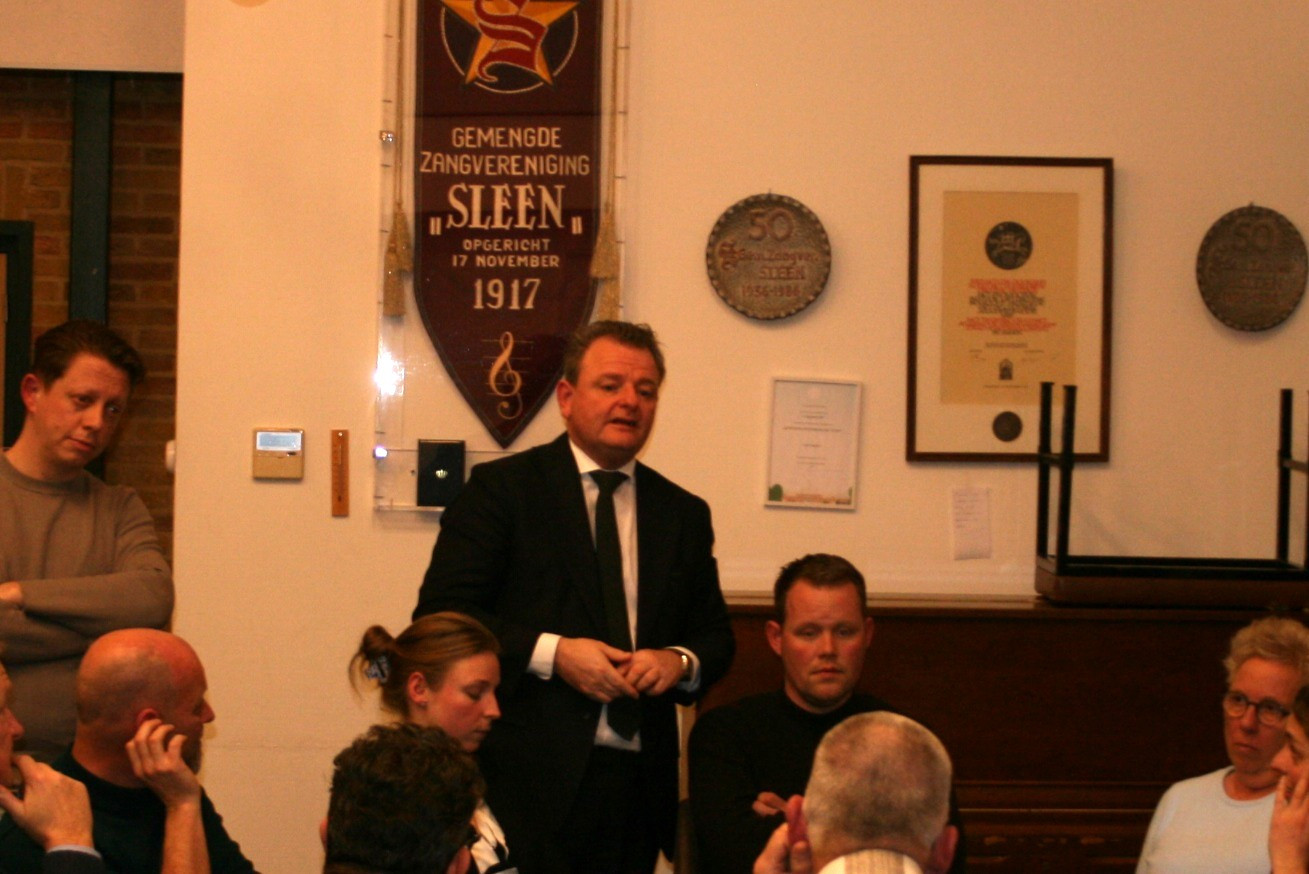 Aan het eind van de avond was de slotconclusie van de burgemeester dat er goed gediscussieerd was en dat er veel ideeën waren om bepaalde problemen op te lossen. Want vroeg of laat kunnen deze calamiteiten zo maar voorkomen in deze onzekere tijden. En dat hij er vertrouwen in heeft dat de mensen in Sleen SAMEN problemen willen oplossen.
