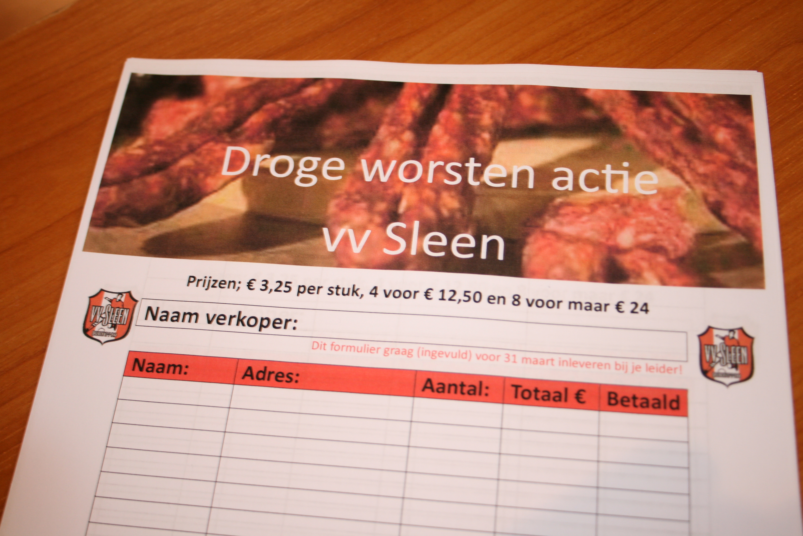 Zaterdag 28 maart was het weer zover. De jeugd tot en met 15 jaar van Voetbalvereniging Sleen trotseerde het slechte weer om de inwoners van Sleen en omgeving te voorzien van een lekkere droge worst.
