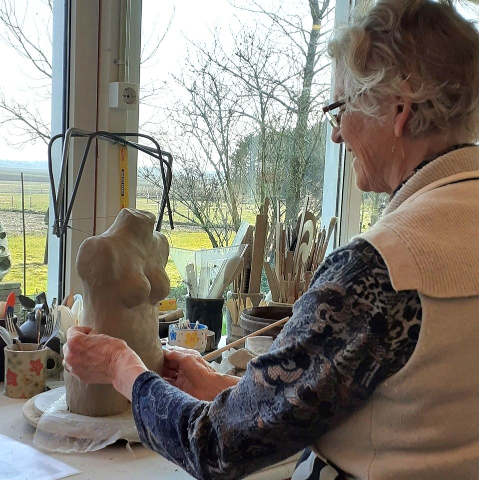 De inspiratie was even weg, maar gelukkig weer helemaal terug. Iepy Hooijenga heeft zelfs bezieling voor haar mooie hobby. Beelden en andere voorwerpen maken van klei. Het is meer dan een gewoon beeldje of schaal maken. Er zit veel gevoel bij zo merkte ik.