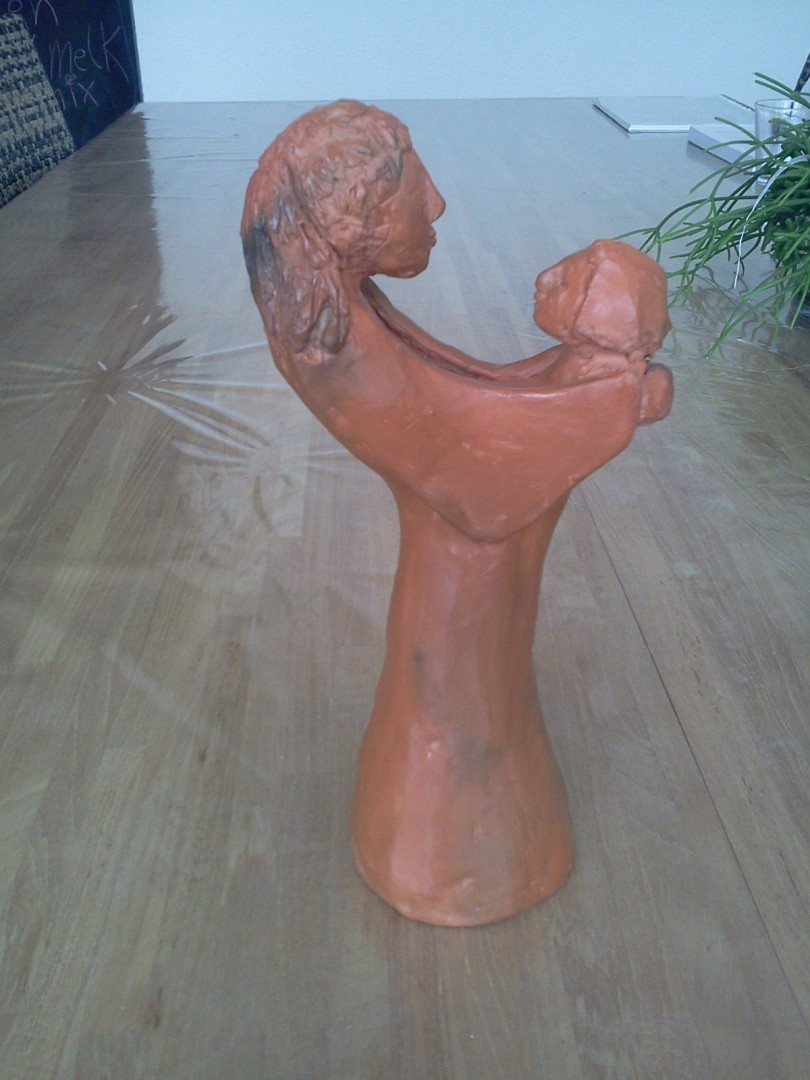 Iepy: "Het beeld voor mijn kleindochter, zij had haar wensen voor het beeld kenbaar gemaakt.....en proces van groei verbeeldt dit, deze is dus geëxplodeerd in de oven omdat de klei nog niet voldoende gedroogd was om in de oven te bakken".