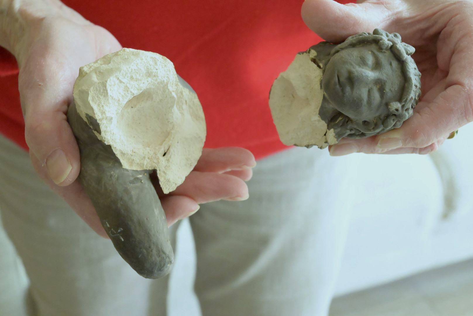 Dat is hier wel even anders. Natuurlijk begin je met een stuk klei, net als toen. Maar dan begint de vormgeving. Iepy wilde wel met een draaischijf werken (boetseren) maar dat was voor haar fysiek erg lastig. Een vriendin gaf haar de tip om dan te kiezen voor handvormen. Dat gaat haar veel beter af.