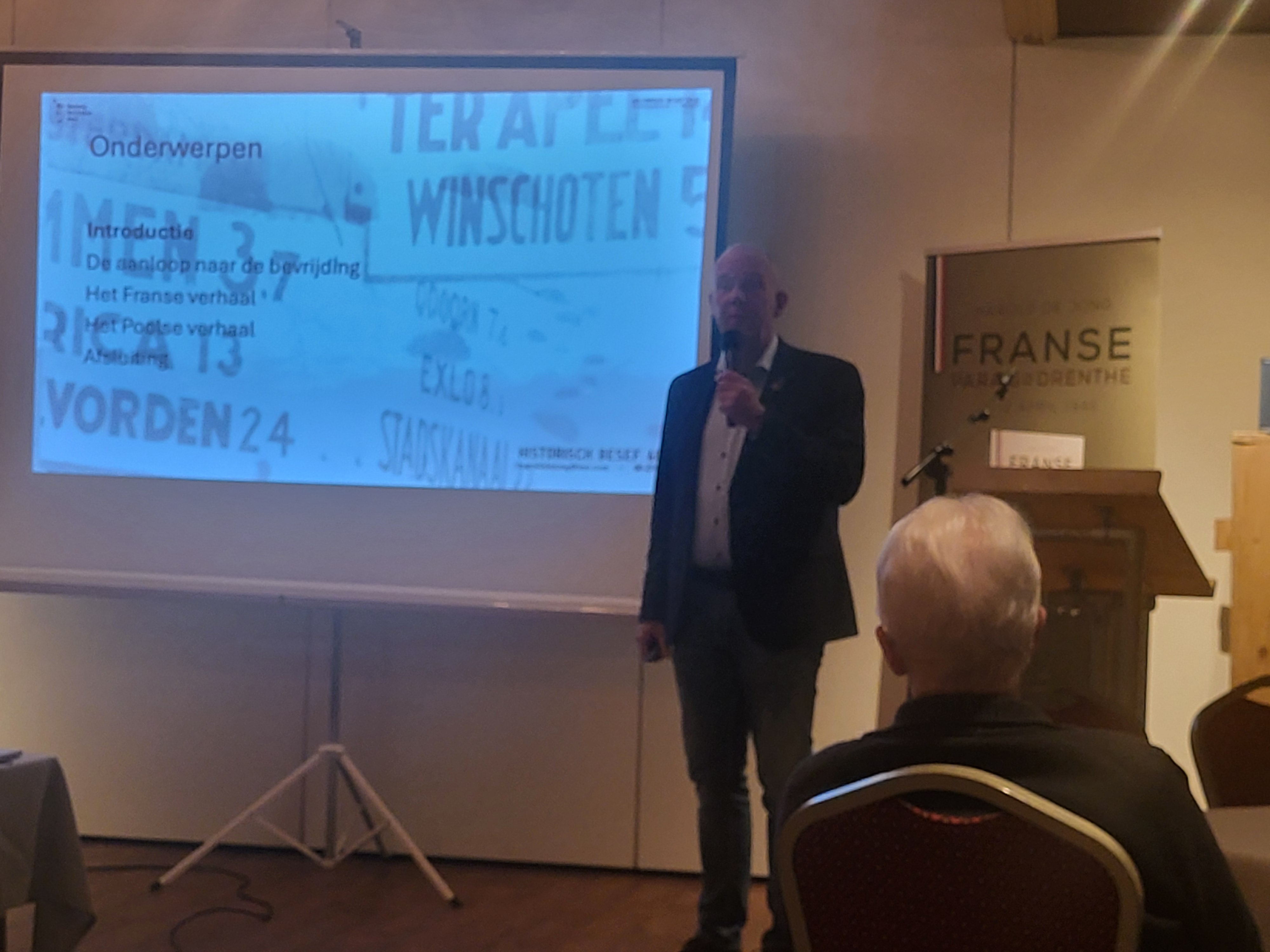 Voor een goed gevulde zaal gaf De Jong een presentatie over hoe de oorlog in 1940 begon, en hoe de Poolse strijders vanuit Coevorden naar het Noorden trokken om de plaatsen in de omgeving te bevrijden.