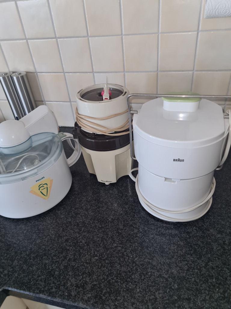Braun sapcentrifuge, Philips ijsmachine en Moulinex hakmachine te koop. Alles werkt prima, wegens overcompleet
